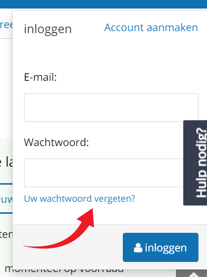 Onder het veld waar u uw inloggegevens kunt invoeren, staat een link met de tekst 'wachtwoord vergeten'.